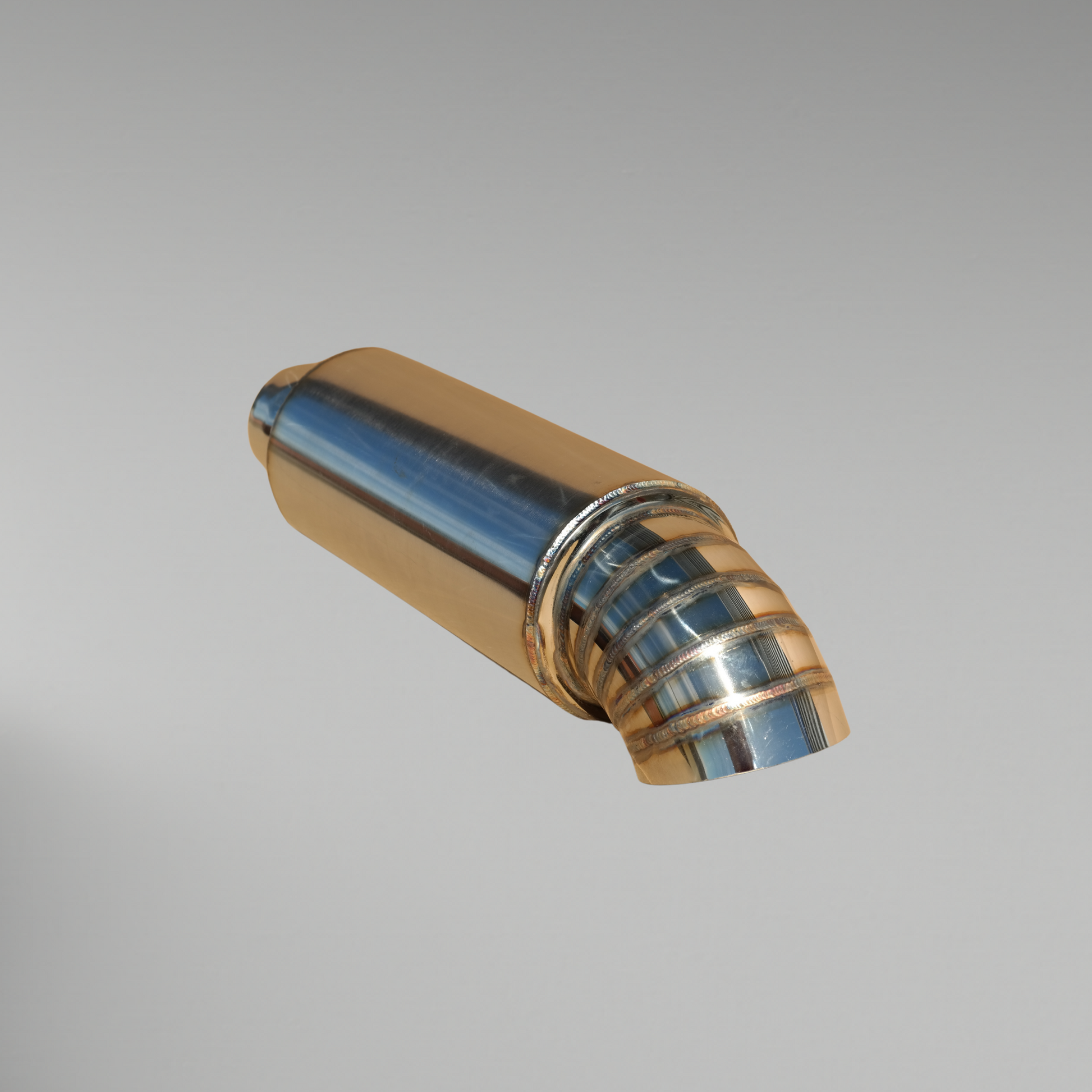 Beyond its aesthetic appeal, this muffler is engineered for performance. It enhances exhaust flow, resulting in a deeper, more refined exhaust note. The durable stainless steel construction ensures long-lasting performance and resistance to corrosion.